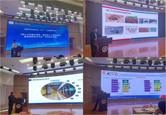 报告会上,叶教授等3位专家分别做了主题为“城市地下空间开发利用与绿色发展”、“地铁建设交流”和“频谱激电成像法在岩溶地质领域的应用研究”的学术报告,内容涵盖地下空间的发展历程、社会经济高速发展下城市综合症、城市地下空间绿色发展的现状及出路以及宜居地下空间所涉及的关键科学问题;地铁基础知识、地铁车站和区间的主要施工方法以及地铁施工技术的发展展望;常见地球物理勘探方法的原理及应用、频谱激电成像法测试设备的研发及其在实际工程问题中的应用等,涉及岩土地下工程、轨道交通建设和工程地质勘探等多个专业领域。报告会结束后,参会师生与几位专家就相关专业问题及个人规划进行了互动交流,几位专家针对师生问题进行详细解答,现场气氛热烈。整场报告内容丰富多彩,讲解生动形象,学术氛围浓厚,现场师生收益匪浅。