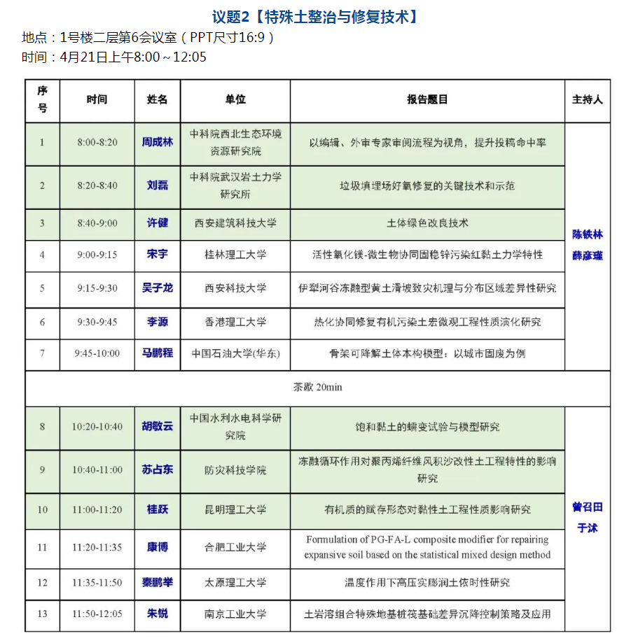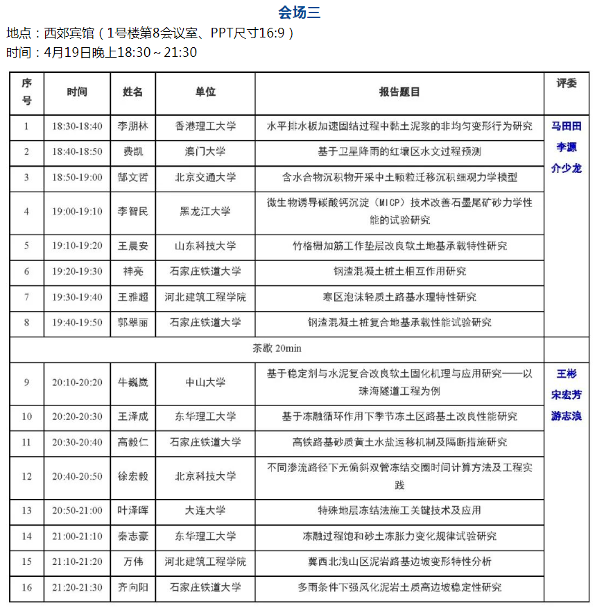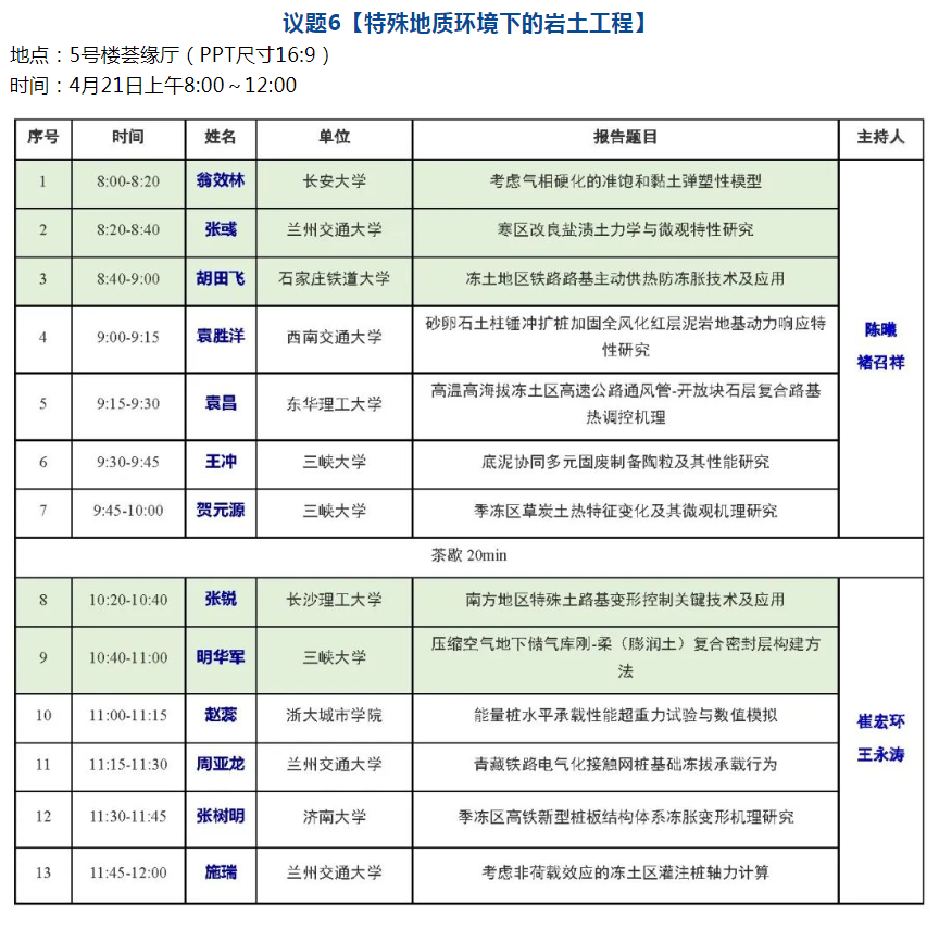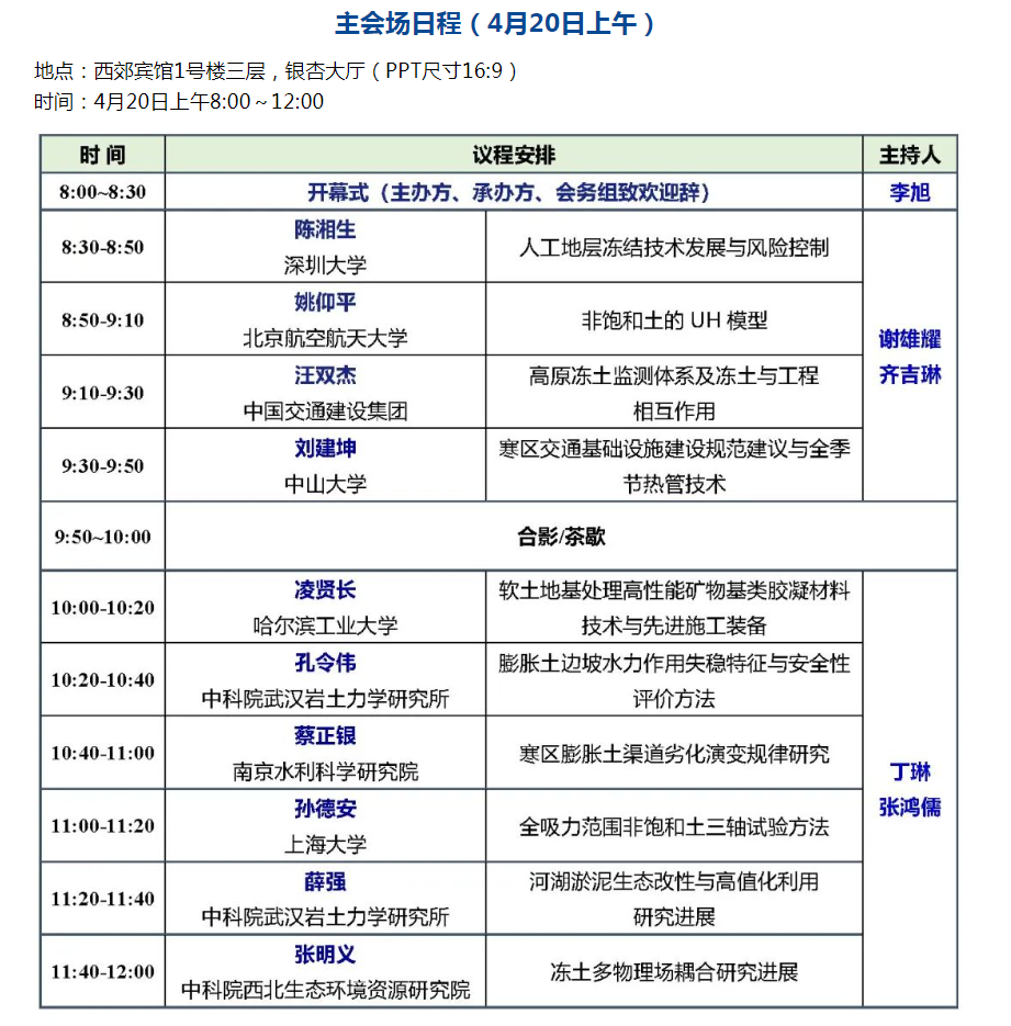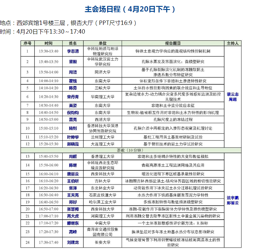 协办单位:信阳师范大学、青海交通职业技术学院、中国科学院西北生态环境资源研究院、中国科学院武汉岩土力学研究所、西安科技大学、兰州交通大学、石家庄铁道大学、河北建筑工程学院、东华理工大学、同济大学、东南大学、吉林大学、三峡大学、黑龙江省水利科学研究院、清华大学、中国水利水电科学研究院、北京科技大学、北京工业大学、中国矿业大学、哈尔滨工业大学、西北农林科技大学、青海北麓河高原冻土工程安全国家野外科学观测研究站、青藏高原公路建设与养护重点实验室、青海省绿色交通防灾减灾及数字化技术重点实验室(待增补)