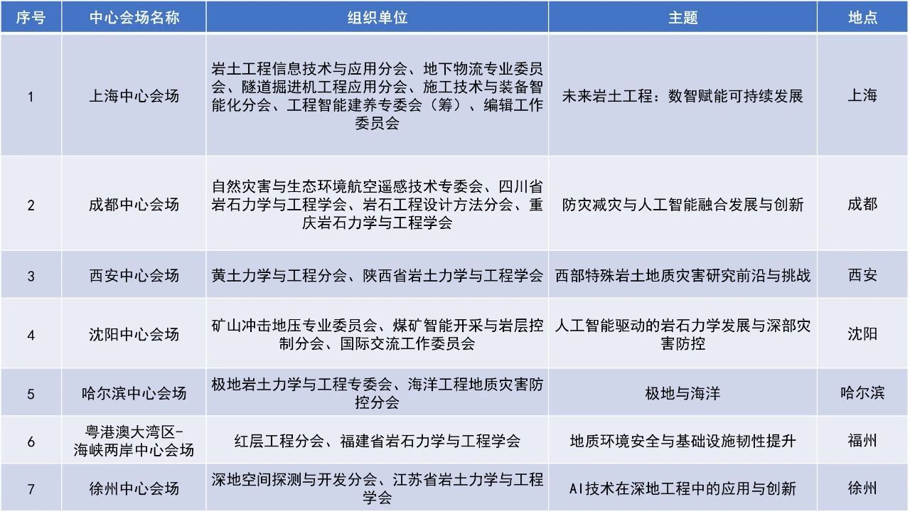 为贯彻学会党委“为青年服务,为未来服务,对历史负责”的工作部署,把高校本科生、研究生等未来科技工作者带到科技最前沿,CHINA ROCK 2025延续“主会场+中心会场+卫星会场”的组织形式,公开招募卫星会场承办单位。2024年土木工程、采矿工程、地质工程、城市地下空间等相关专业的200余家高校、科研院所参与组织卫星会场。请相关单位扫描添加卫星会场的企业微信,了解卫星会场组织事宜。